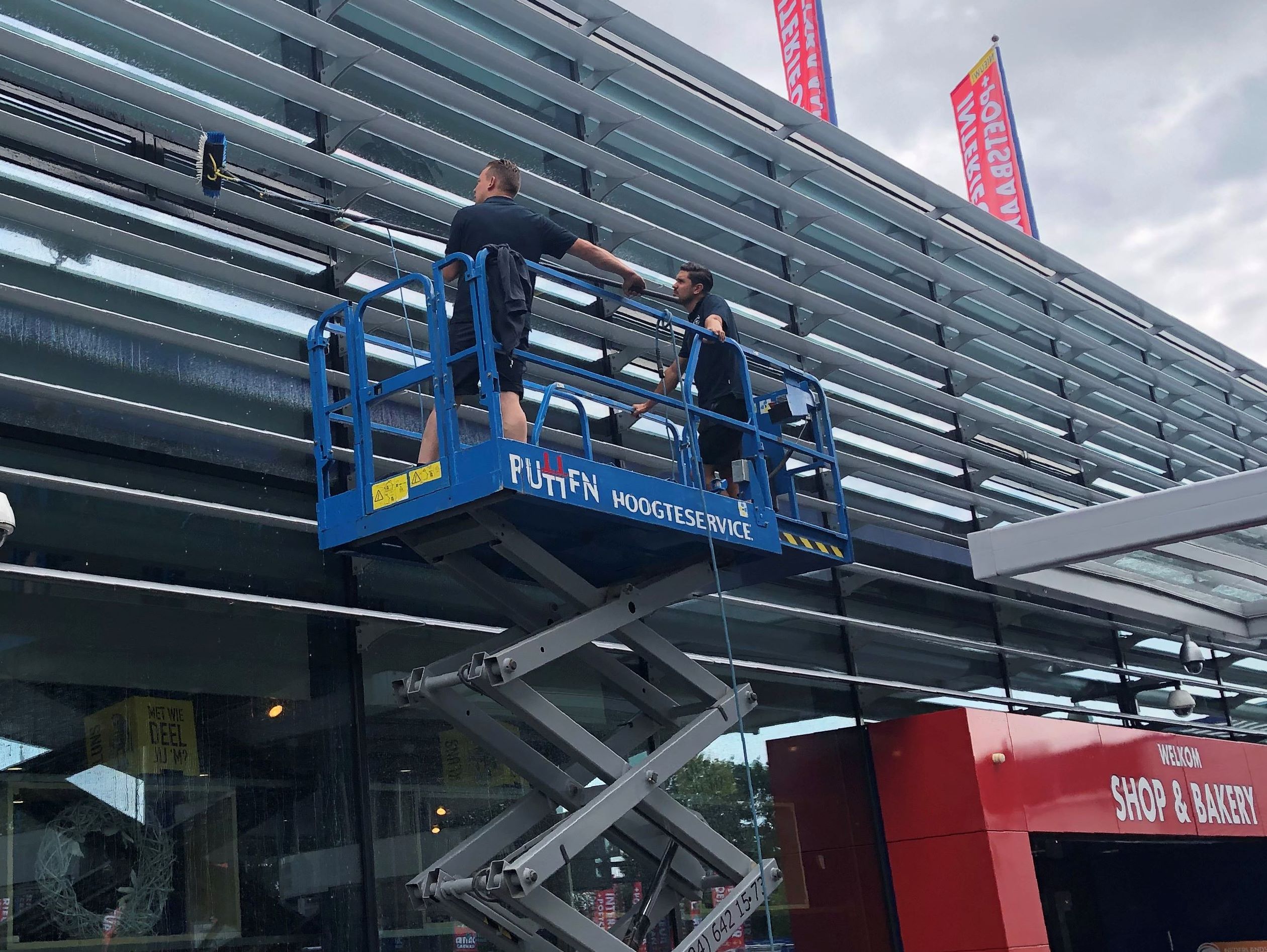 Wilt u uw ramen en gevel laten reinigen? Onze VCA* gecertificeerde glazenwassers kunnen iedere gevel de baas. Op vakkundige wijze verzorgen zij glasbewassing en gevelreiniging. Ook kunnen ze uw kunststof en aluminium kozijnen reinigen. Indien nodig werken zij met een hoogwerker of telescoopstelen. Van ieder gebouw of object wordt voorafgaand aan de werkzaamheden een risico-inventarisatie opgesteld, om zo een veilige werkomgeving te waarborgen.
